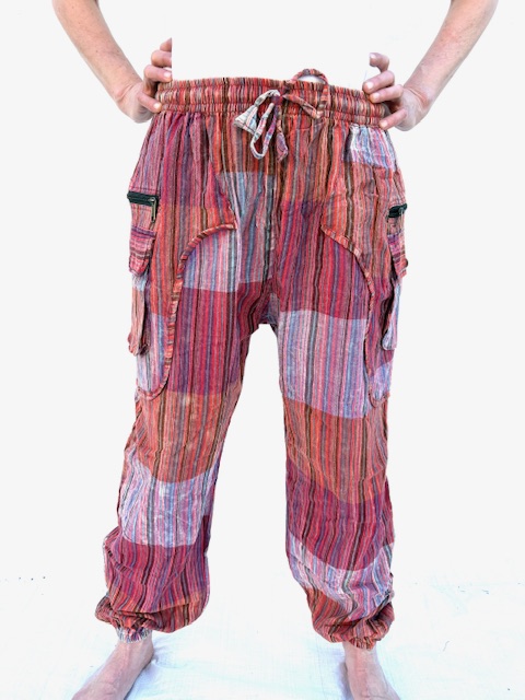 Tenké bavlnené plátno je vzdušné a príjemné. Dĺžka nohavíc je 90 cm, patent je elastický a univerzálny. Prať v studenej vode do 30st.