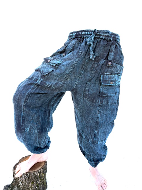 Pohodlné gate s príjemného bavlneného plátna, s elastickým patentom a vreckami. Dľžka 100cm. Prať do 30 stupňov. Modré